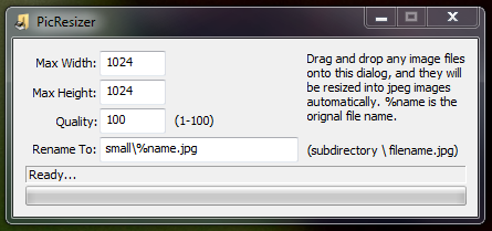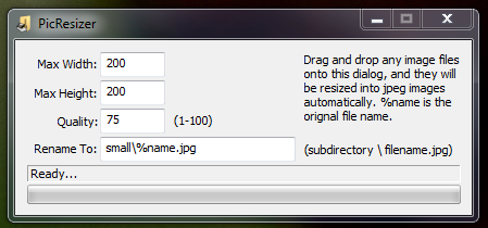 The PicResizer application is a small Windows utility to expedite the bulk resizing of images for usage on a web page. This saves on server disk space, bandwidth usage and your time. You can download the program file from: